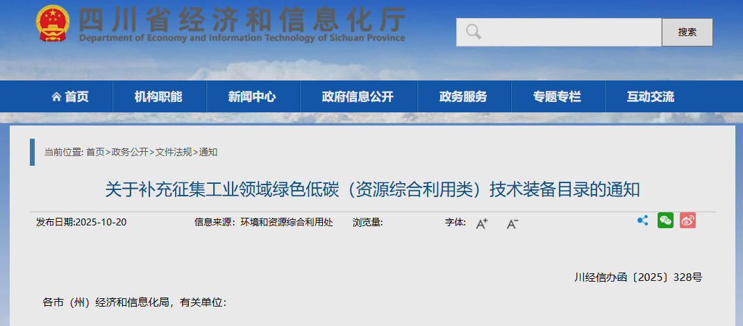 关于补充征集工业领域绿色低碳(资源综合利用类)技术装备目录的通知
