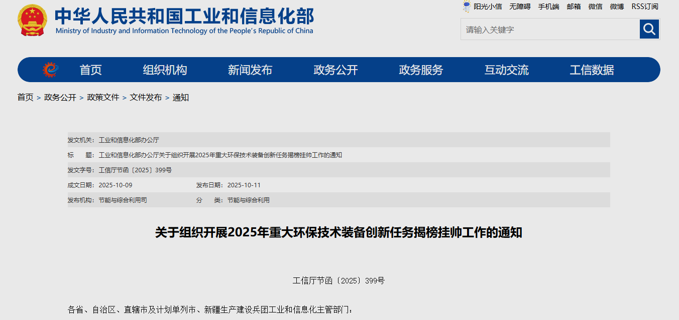 关于组织开展2025年重大环保技术装备创新任务揭榜挂帅工作的通知