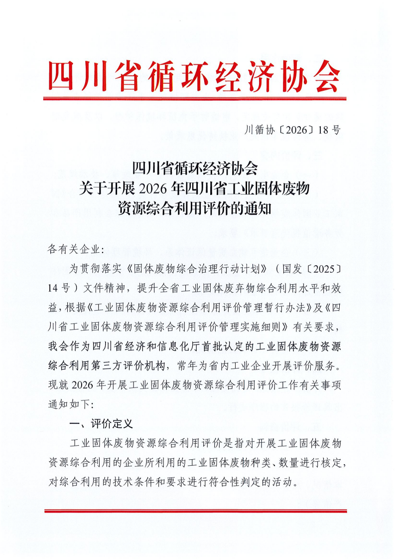 关于开展2026年四川省工业固体废物资源综合利用评价的通知