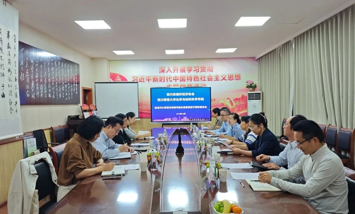 为推进污水资源化利用专委会高质量发展,10月17日,钟勤建会长赴四川师范大学化学与材料科学学院(以下简称“学院”)考察污水资源化利用专业委员会(下称简称“专委会”),调研了解分支机构建设、学院教学及科研情况,并围绕污水资源化利用领域的协同创新与可持续发展路径展开座谈交流。副会长杨有仪,专委会主任、学院院长伍晓春,专委会秘书长马骏出席座谈会,学院副院长赵丽娟主持会议。