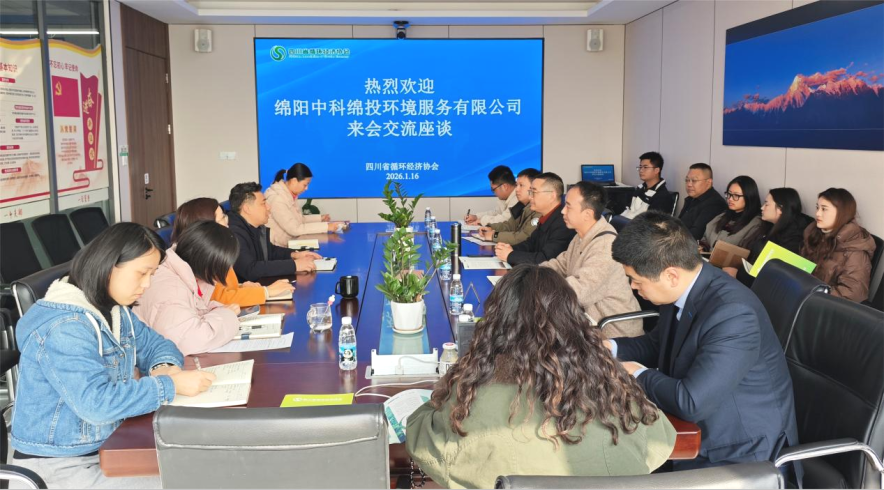 1月16日,绵阳中科绵投环境服务有限公司(以下简称中科绵投)总经理姜松一行来会交流座谈,副会长兼秘书长黄均及双碳工委相关负责同志参与交流。