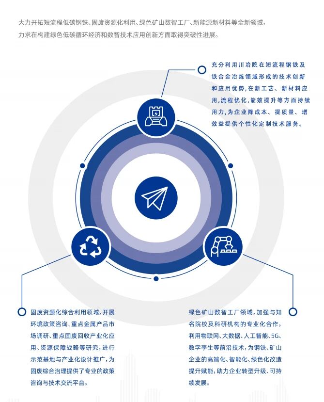 1979年建院以来从单一的冶金和矿山设计拓展到工业与民用建筑、道路、电力、环保、节能、固废等多个行业和领域,发展为多学科、多专业、多行业的甲级设计院。