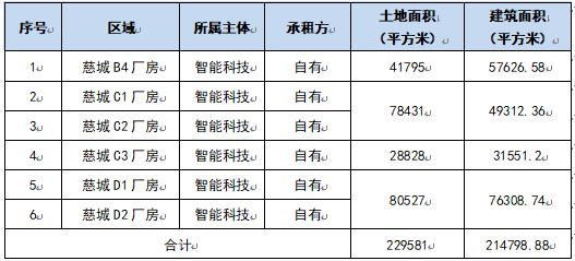 宁波奥克斯智能科技股份有限公司土地面积229581㎡,建筑面积214798.88㎡