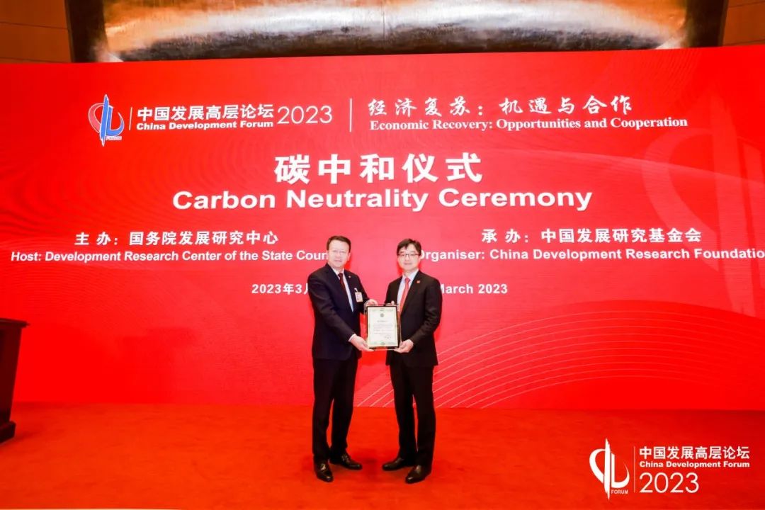 “兹证明,中国发展高层论坛2023年年会产生的温室气体排放量,通过注销来自企业捐赠的中国核证自愿减排量(CCER)实现碳中和。”在3月25日上午举行的中国发展高层论坛2023年年会碳中和仪式上,作为本次论坛的承办方,中国发展研究基金会收到了这样一份碳中和证书。据悉,这样实现碳中和的绿色论坛,在国内大型国际会议中尚属开创之举。