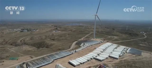 总台记者 王灏一:在远处新的风机正在安装,在我身后这些是已经退役的风机,总重量达到15000多吨,放在地上可以填满七个足球场大小的场地。