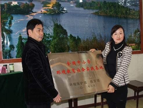 1月9日上午,在仁寿县黑龙滩风景区举行了“全国中小学环境教育社会实践基地”挂牌仪式。四川省环境保护宣传教育服务中心副主任王卓将沉甸甸的“国字号”招牌,授予了黑龙滩风景区。