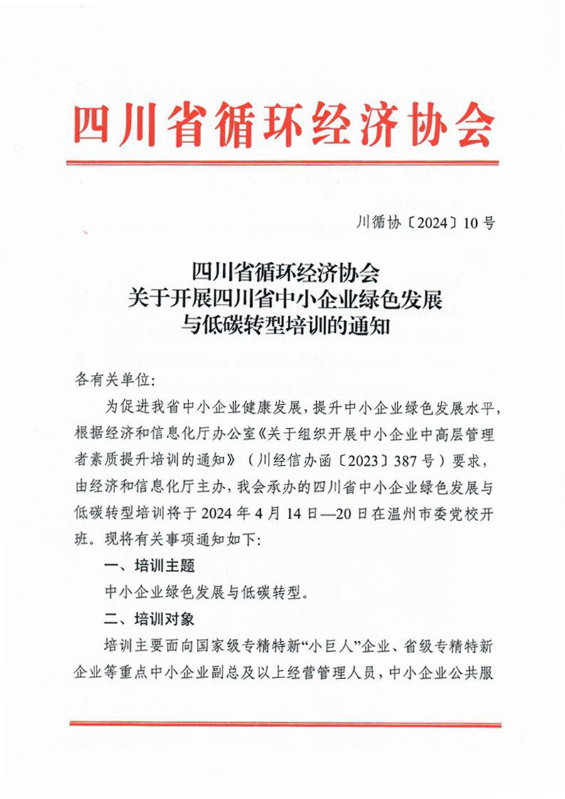 关于开展四川省中小企业绿色发展与低碳转型培训的通知