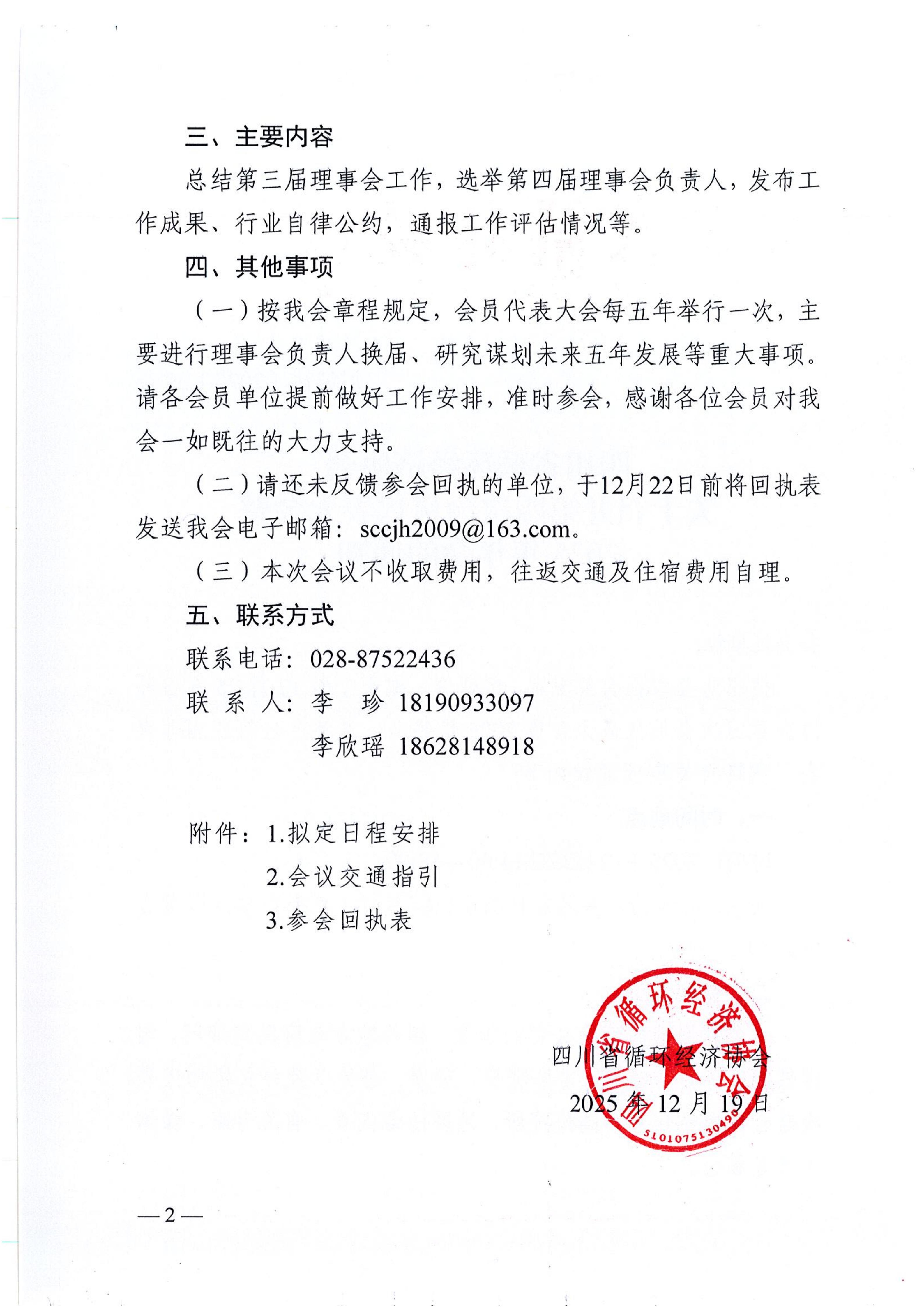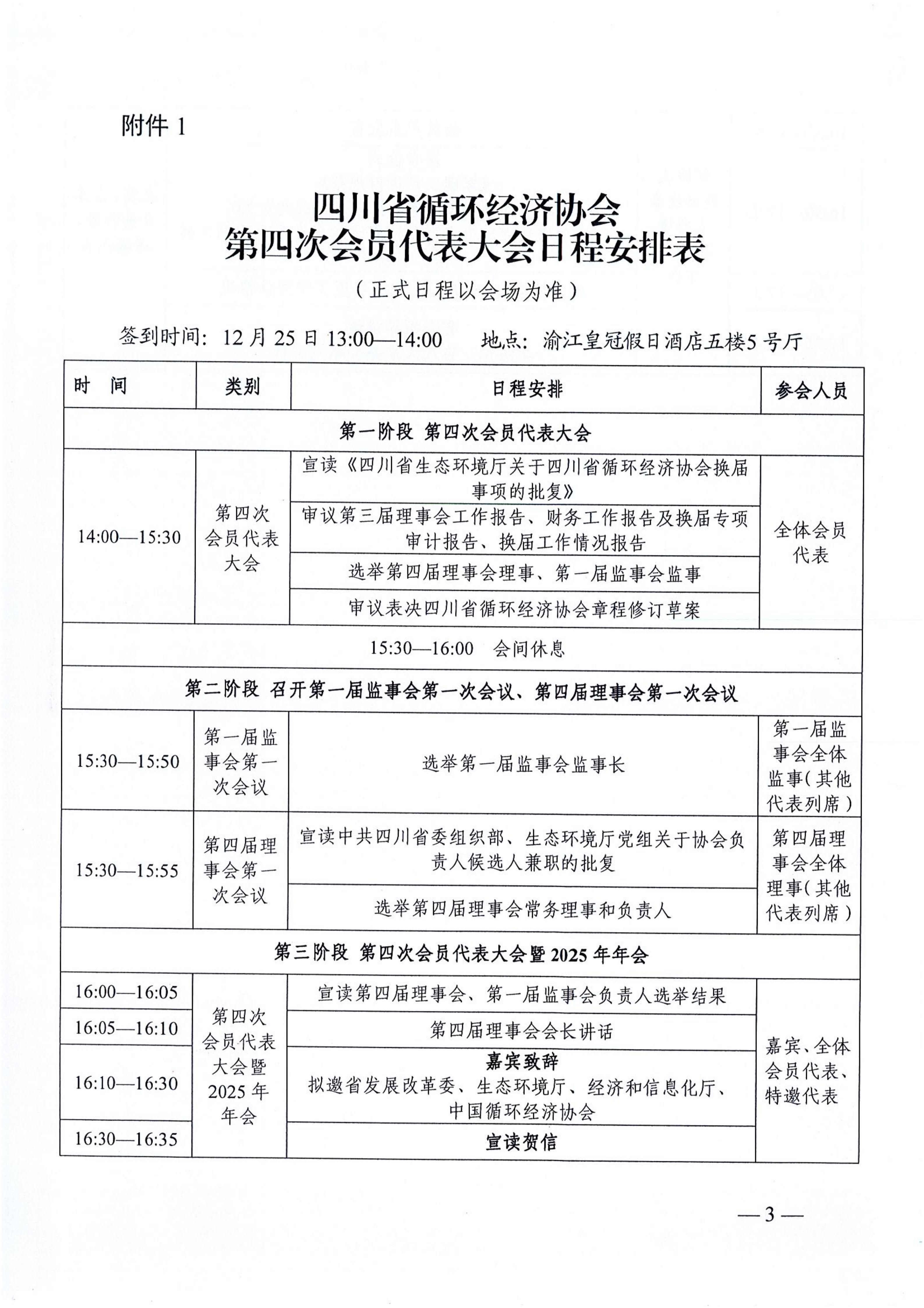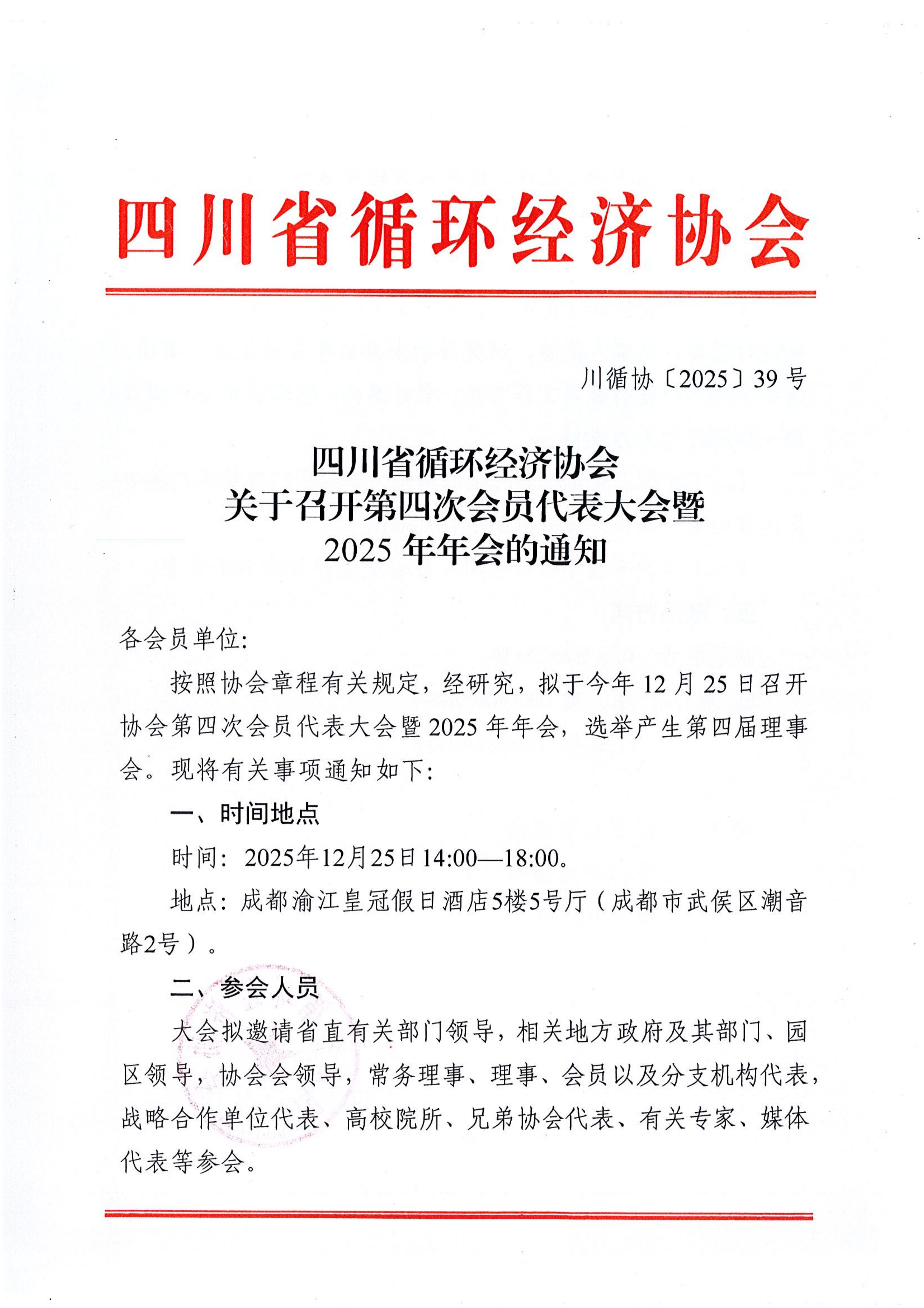 四川省循环经济协会关于召开第四次会员代表大会暨2025年年会的通知
