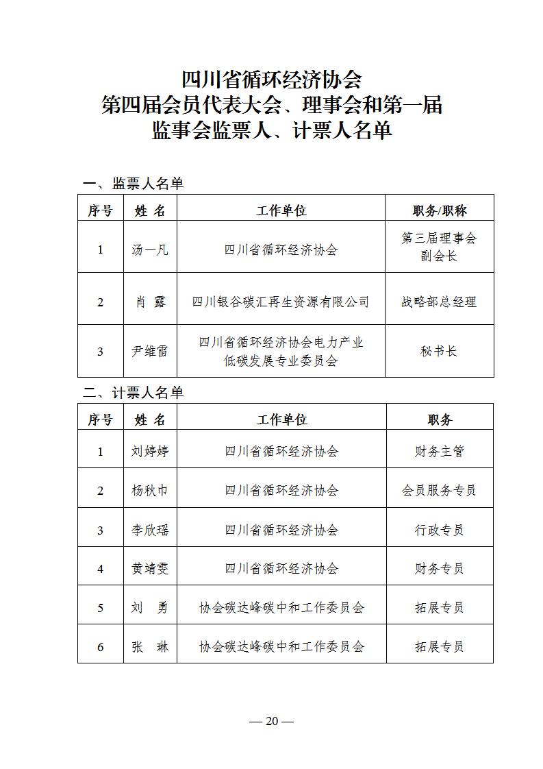 按照换届工作有关规定,现将第四届会员代表大会、理事会和第一届监事会监票人、计票人名单公示如下,公示期为7天。公示期间,个人、集体和组织均可对名单有关情况向我会反映。