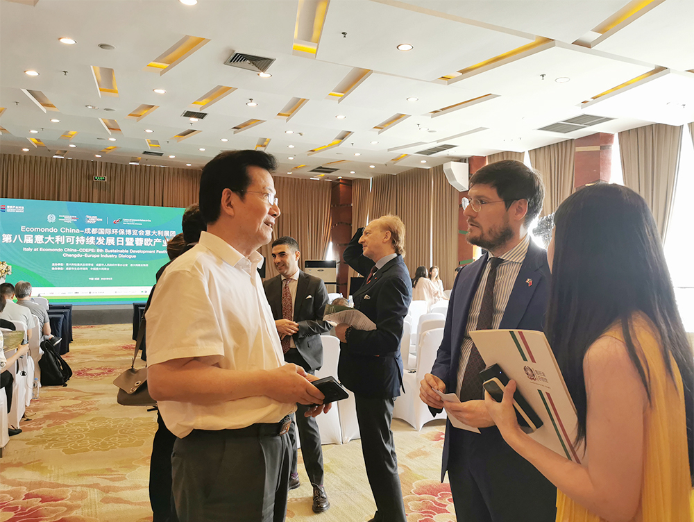 在随后举行的第八届意大利可持续发展日暨蓉欧产业对话活动上,杨有仪副会长与意大利驻重庆总领事施启帆先生就四川省与意大利循环经济发展情况进行了交流,双方共同探寻合作机遇。