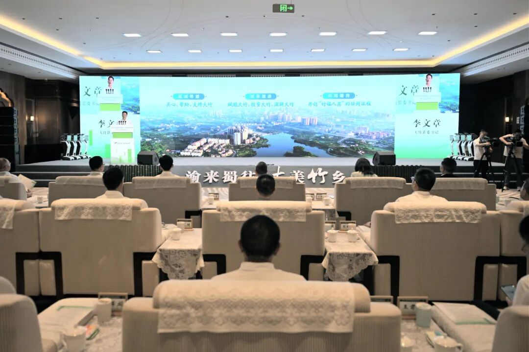 在“聚力共盟”篇章,现场政企协同、资本助力、优质产品集中推介、合作项目签约落地等务实举措密集实施。县委副书记、县长何长华从“以竹代塑”“以竹代钢”“以竹代木”“以竹兴业”四大维度,作大竹县竹产业发展推介,展示了大竹竹产业的发展成果和未来规划。