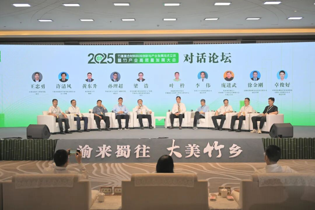 主旨演讲结束后,对话论坛精彩上演。9位来自不同领域的嘉宾各抒己见,展开跨界交流。中国林业科学研究院首席科学家房桂干建议县委、县政府在打造竹产业园区时,不仅要延长产业链还要拓宽加工链,充分利用竹子的每个部分,降低各业态成本。此次“智慧经纬”篇章所汇聚的智慧成果,将为进一步挖掘竹资源潜力、推动竹产业向高端化、绿色化迈进注入强劲动力。