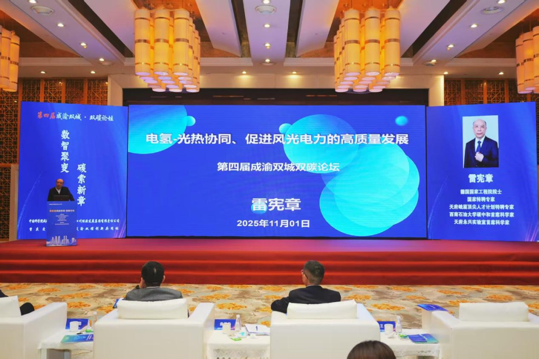 中国工程院院士、清华大学碳中和研究院院长、清华大学环境学院教授贺克斌,德国国家工程院院士、天府永兴实验室首席科学家雷宪章等分别围绕《双碳行动与产业变革》《构建电—氢—光热协同新范式、促进风光电力的高质量发展》等主题作报告。
