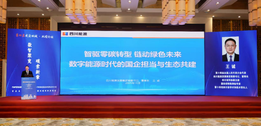 四川能源发展集团党委书记、董事长王诚以《智驱零碳转型 链动绿色未来——数字能源时代的国企担当与生态共建》为题作主旨演讲。