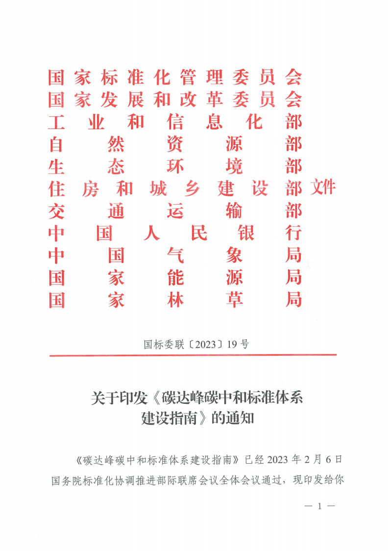 《碳达峰碳中和标准体系建设指南》已经2023年2月6日国务院标准化协调推进部际联席会议全体会议通过,现印发给你们,请结合实际认真贯彻落实。