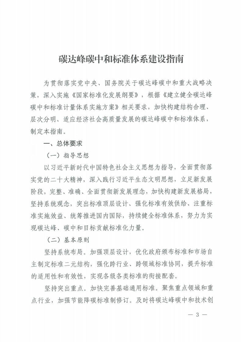 关于印发《碳达峰碳中和标准体系建设指南》的通知